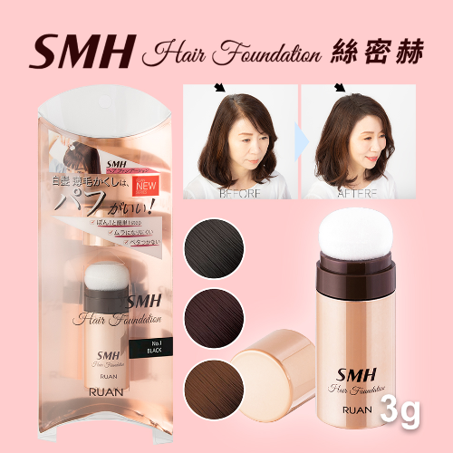 含玻尿酸、膠原蛋白、高保濕透明質3種美容成分,可防止皮膚、頭皮乾燥;9種嚴選天然植物保濕成分,保持髮絲和頭皮健康;另含有3種礦物質改善顯色和觸感,可以輕鬆地與白髮和肌膚融為一體,打造年輕感,效果自然並使用簡單。一體式粉撲設計,如同秀髮專用粉底,只需輕輕按壓於頭髮隙縫空洞處,不弄髒雙手就能透過靜電原理吸附,3種色號、輕便包裝,隨身攜帶隨時創造豐盈視覺效果,無論下雨天、颱風天或健身流汗都不怕掉落,再也不擔心高髮際線和稀疏髮量影響顏值。