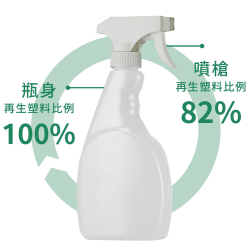 使用再生塑料比例超過80%,使其成為市面上PCR再生塑膠比例最高的扳機噴霧器。