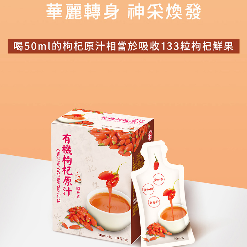 每日飲用一包有機枸杞原汁提供滿滿能量