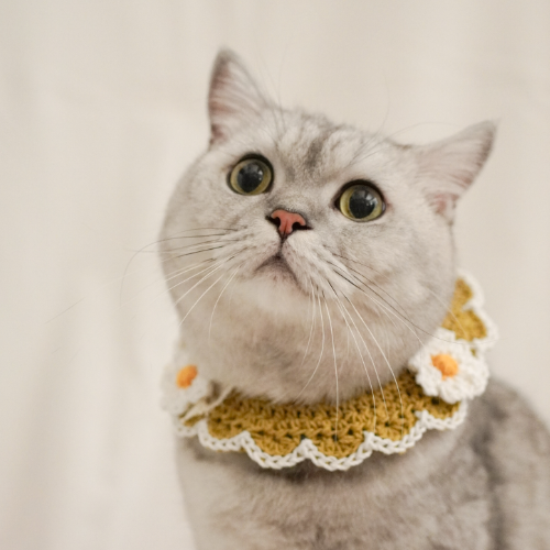 This scarf is handwoven with cotton yarn, featuring fresh and lovely little daisies paired with elegant lace, bringing both energy and warmth to your furry friend.