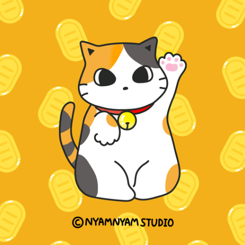 The Maneki-neko that brings happiness and wealth! Find it on our hand towels, trays, and die-cut stickers :)