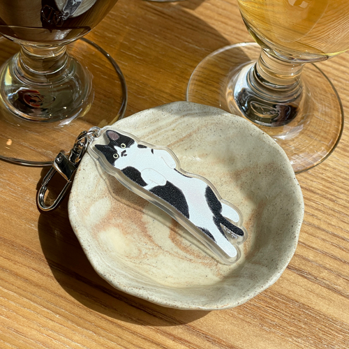 A clear acrylic cat keychain that brings a little joy wherever you go.
