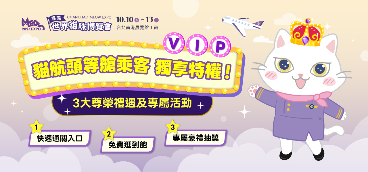 成為展昭世界貓咪博覽會VIP,立即享有2025年度3大尊榮禮遇: