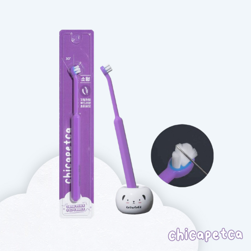 韓國Chicapetca 雲朵軟毛牙刷,採用敏感性牙齒適合的雲朵軟刷毛,0.08mm細軟毛,溫和不刺激牙齦。30度斜角刷頭,家長們使用時更順手,輕鬆就能刷貓狗後段臼齒。