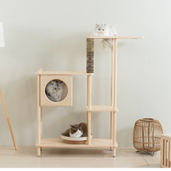 獨棟貓咪大廈,三層樓高,內有大坪數空間、採光良好☀的洞洞窗戶,還有好爬的大階梯。