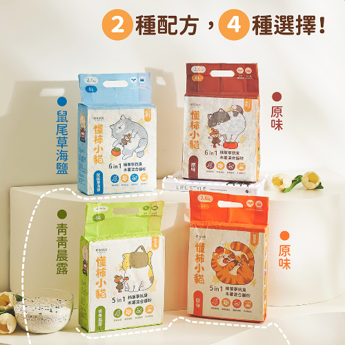 貓有話說 懂柿小貓 6 in 1 柿單寧抗臭木薯混合貓砂 2.6kg[1.5mm條型]