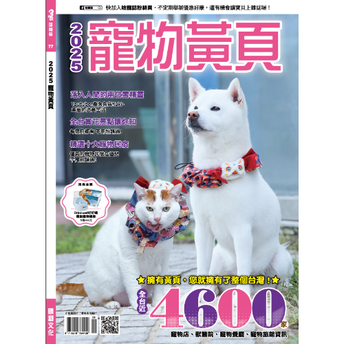 在《2025寵物黃頁》中,我們網羅了全台灣的獸醫院、寵物店、寵物友善餐廳與寵物友善住宿等等,每一筆資料和數據皆是由我們精心整理蒐集而成,苦惱於要選擇哪間餐廳或困擾於哪邊有合適醫院的讀者可以利用這本雜誌免去多日憂愁!