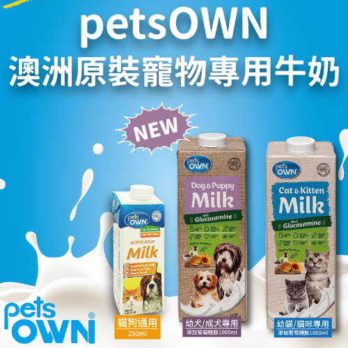澳洲原裝進口 PetsOwn 寵物牛奶,完美補充優良蛋白質與鈣質。