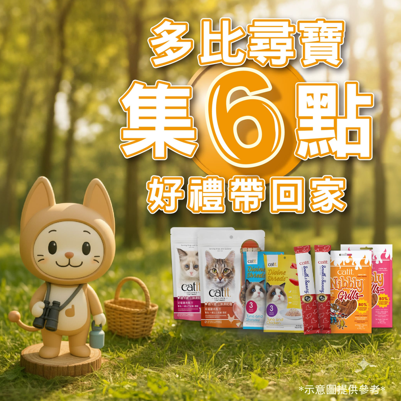 喵星人試吃大挑戰 活動內容:完成指定關卡,就能把 Catit美味試吃禮 帶回家,讓主子一次體驗多種人氣美味。 闖關禮包含:品牌產品三折頁 1份 CATIT凍干糧試吃包 1包、CATIT肉泥 2條、Catit餐包 1包、Catit咬一口 1包 多樣美味一次入手,讓毛孩找到最愛的口味 限量贈送,送完為止