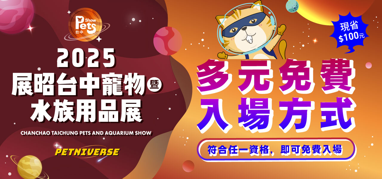 - 上述所有多元免費入場方式,限【2025展昭台中寵物暨水族用品展-口碑場】使用。