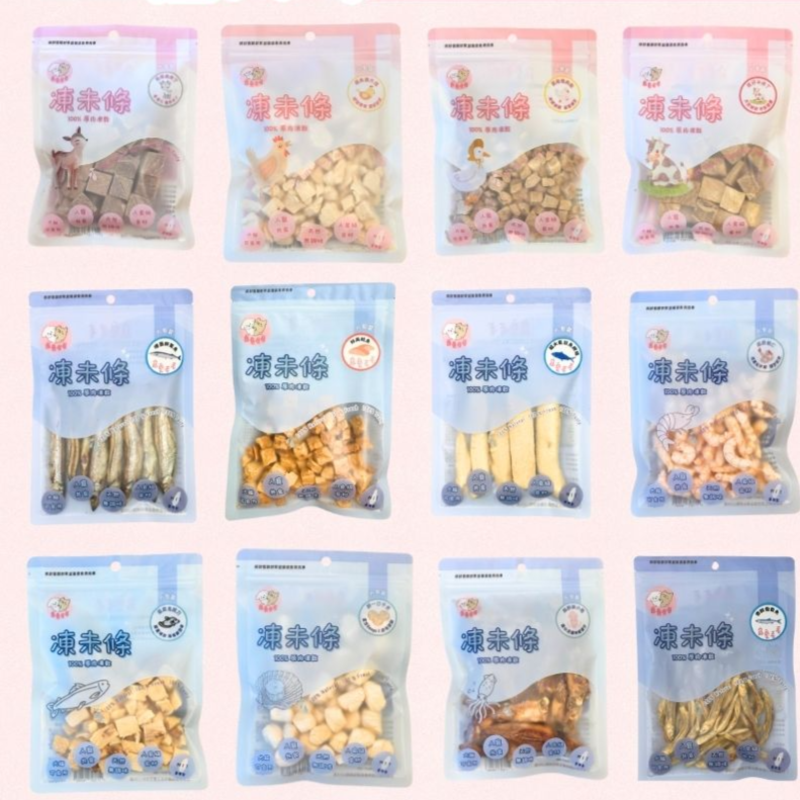 人氣原肉零食區 多達 36 種口味任你挑! 狗狗最愛 貓咪也瘋搶 熱門口味包含: 雞肉、牛肉、鹿肉、鴨肉、蝦仁、干貝、小卷、鬼頭刀、柳葉魚、虱目魚...等超人氣口味。 任選混搭都可以 買5送1 帶6包回家 買7送2 帶9包回家 買10送3 帶13包回家 買越多越划算 不限口味自由搭配