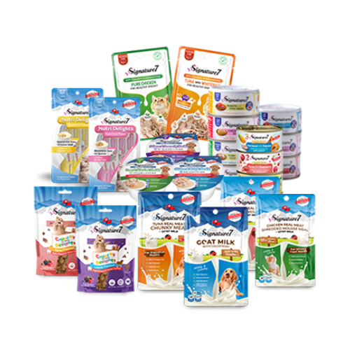 毛孩是您的心寵,我們了解您對牠的愛與呵護。為了讓牠每一餐都能品嚐到美味與營養,心寵Signature 7專為毛孩每日健康研製全系列配方寵食,包含:犬用享鮮杯、貓用主食罐、貓用主食餐包、貓用水果湯罐、犬貓用羊奶餐包、貓用點心脆餅、貓用肉泥等。無論是每日膳食、或是獎勵零食,補水餐點,我們能提供毛孩一周7天,天天不一樣的餐點,讓生活不只營養更美味。