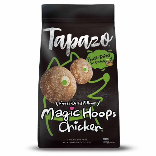 Tapazo特百滋凍乾填心糧,利用獨門填心技術,外圈是酥脆美味乾糧,添加了狗狗常見需要的關節保健成分,中間填入高品質進口肉類製成的7%雞肉凍乾,口口都是美味。幫助關節保健的機能型乾糧,符合AAFCO全齡犬營養標準。