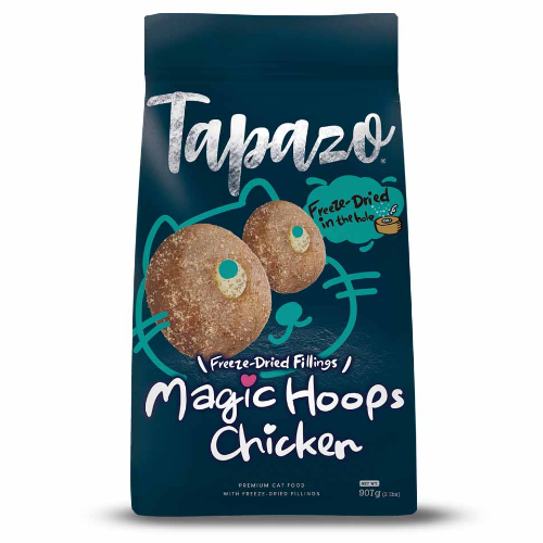 Tapazo特百滋凍乾填心糧,利用獨門填心技術,外圈是酥脆美味乾糧,添加了貓咪常見需要的泌尿保健成分,中間填入高品質進口肉類製成的7%雞肉凍乾,口口都是美味。幫助泌尿保健的機能型乾糧,符合AAFCO全齡貓營養標準。