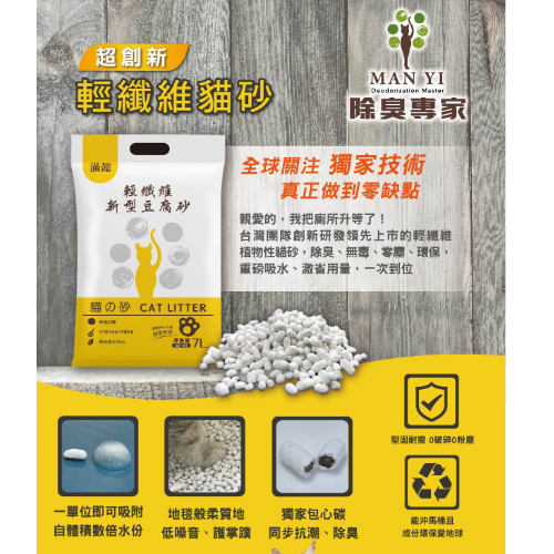全新技術,獨步全球台灣領先上市,不添加香精料製成,寵物與環境零傷害,高吸水功能更迅速吸附貓砂盆水份及完美結團不鬆散,新技術無蛋白成份不會長蟲,不會受潮,除臭力強,貓砂用量更省了,解決了粉塵問題,無塵使用更安心。