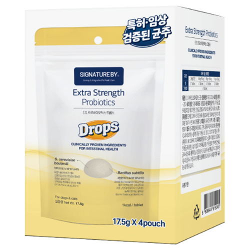 韓國Signatureby超強健益生菌,採用實證耐膽汁胃酸及抗生素的超強健益生菌-枯草桿菌及布拉氏酵母菌,可幫助調整貓狗腸道健內菌叢品質,幫助腸道健康,適用於腸道比較敏感或是易有腹瀉軟便等問題的貓狗食用。鱈魚口味咀嚼錠適口性佳,可當零食或是搭配主食餵食。