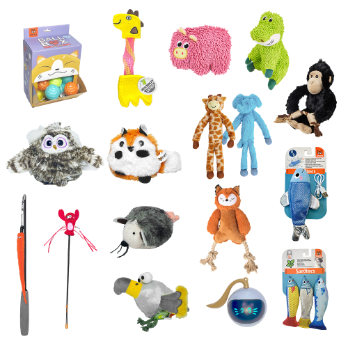 造型絨毛小玩偶:多種動物角色,如狐狸、浣熊、小鳥,輕巧可撥可抱,是居家貓咪打發時間的最佳玩伴。
