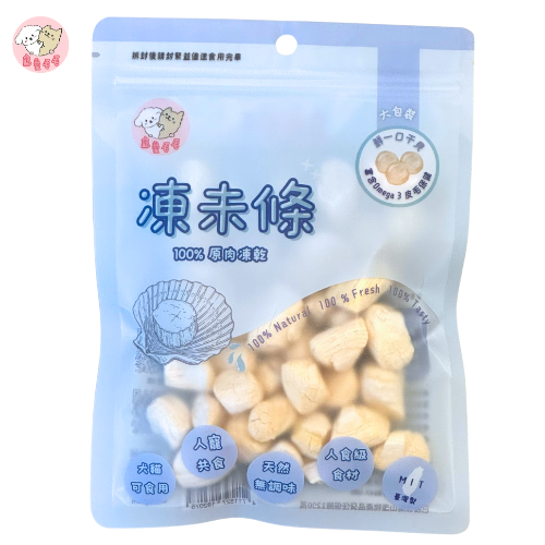 干貝中含有豐富蛋白質與O-Mega3,適量的補充對於保持毛毛皮膚毛髮健康有良好的效果。