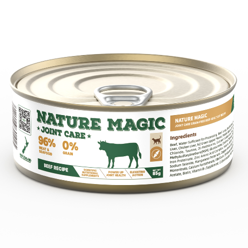 自然魔法 Nature Magic 牛肉無穀主食罐(關節養護系列),專為活力貓咪與關節關注族群設計,吃得好、動得更好!