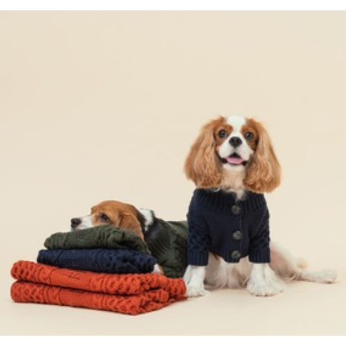 寵物狗翻領開襟毛衣 - 深海藍/墨綠/橘