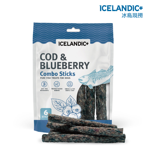 Icelandic+冰島現撈 藍莓鱈魚雙享棒 6支裝-56.7g(2.0oz)-犬用