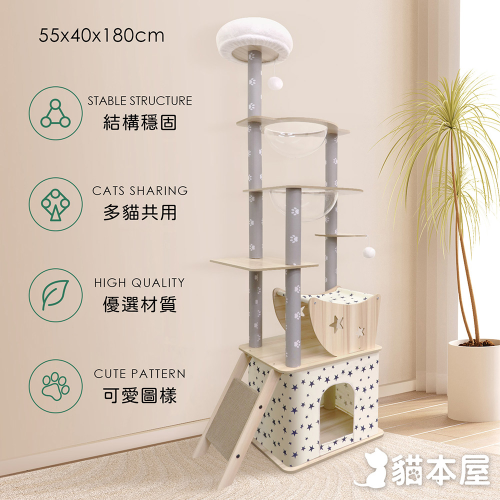 貓本屋 星星款 加大貓屋 隧道吊床豪華雙太空艙貓跳台(180cm)