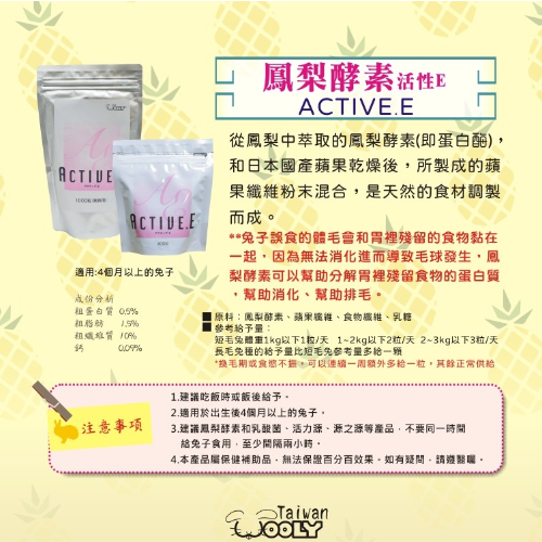 WOOLY ACTIVE.E鳳梨酵素 4個月以上的兔子適用