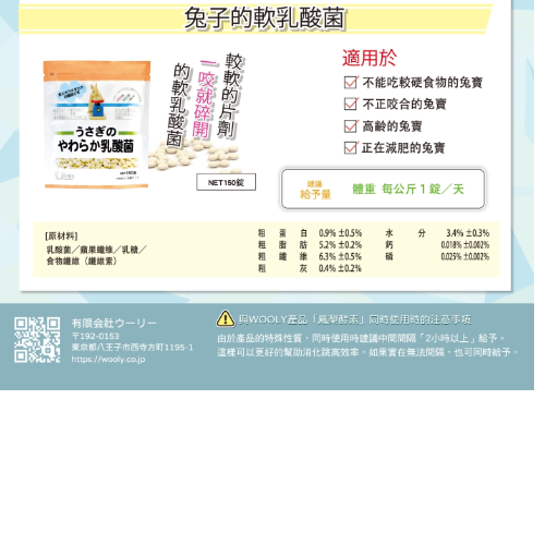 WOOLY 【兔子的 軟 乳酸菌】 錠劑 內含健康三益菌