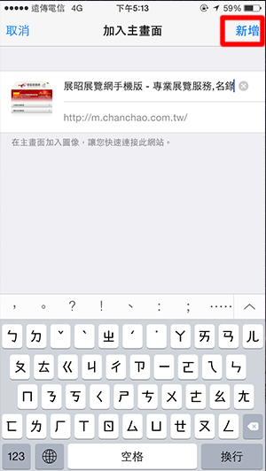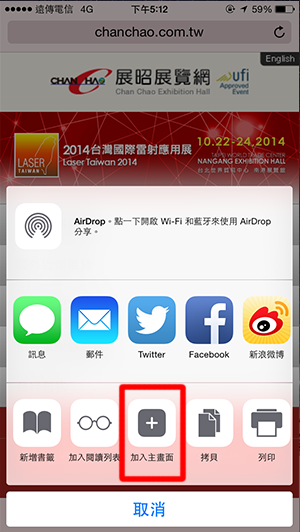 如何將展昭展覽網手機版網頁,建立捷徑到手機桌面(iOS篇)