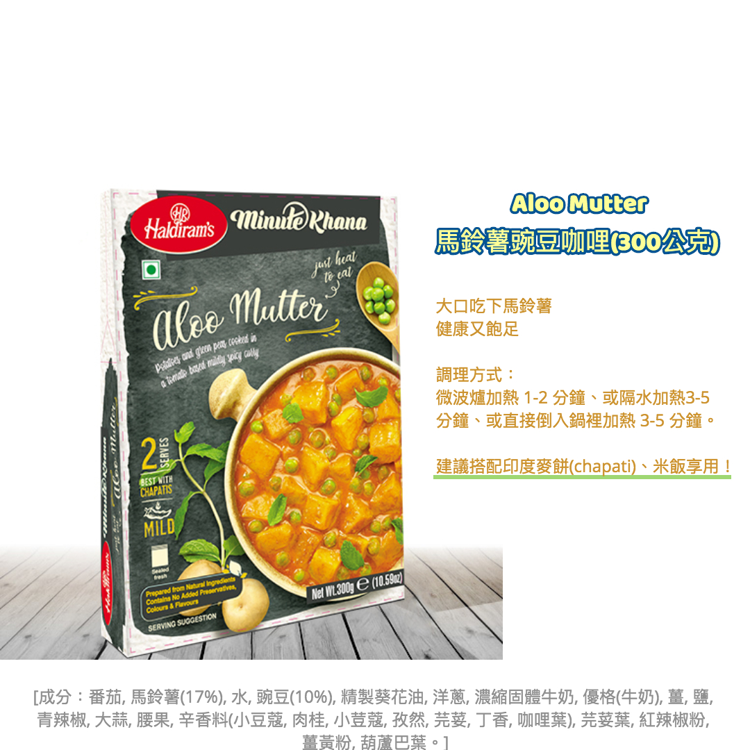 ●印度馬鈴薯豌豆咖哩 Aloo Mutter (300公克)