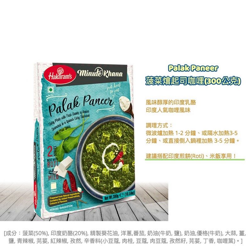 ●印度菠菜燴起司咖哩 Palak Paneer (300公克)