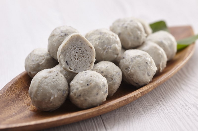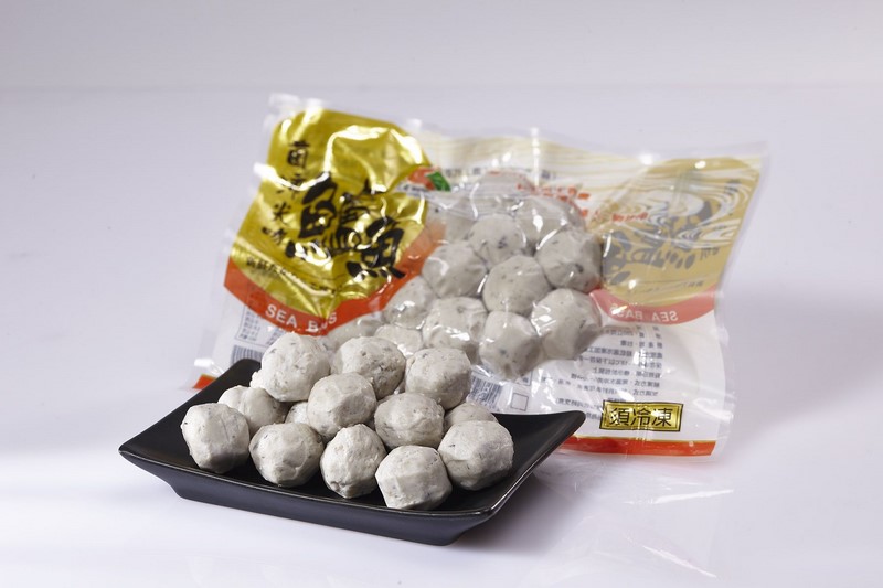 2、菌沛純真鱸魚丸:鱸魚肉送至加工廠先刨成片後,將魚片以加工廠特有的加工技術打出魚漿,再製作成型、水煮,冷卻後個別急速冷凍,