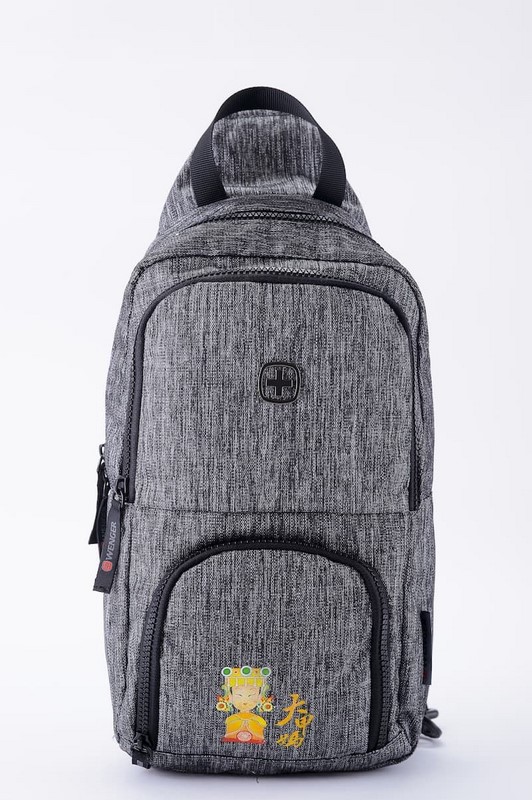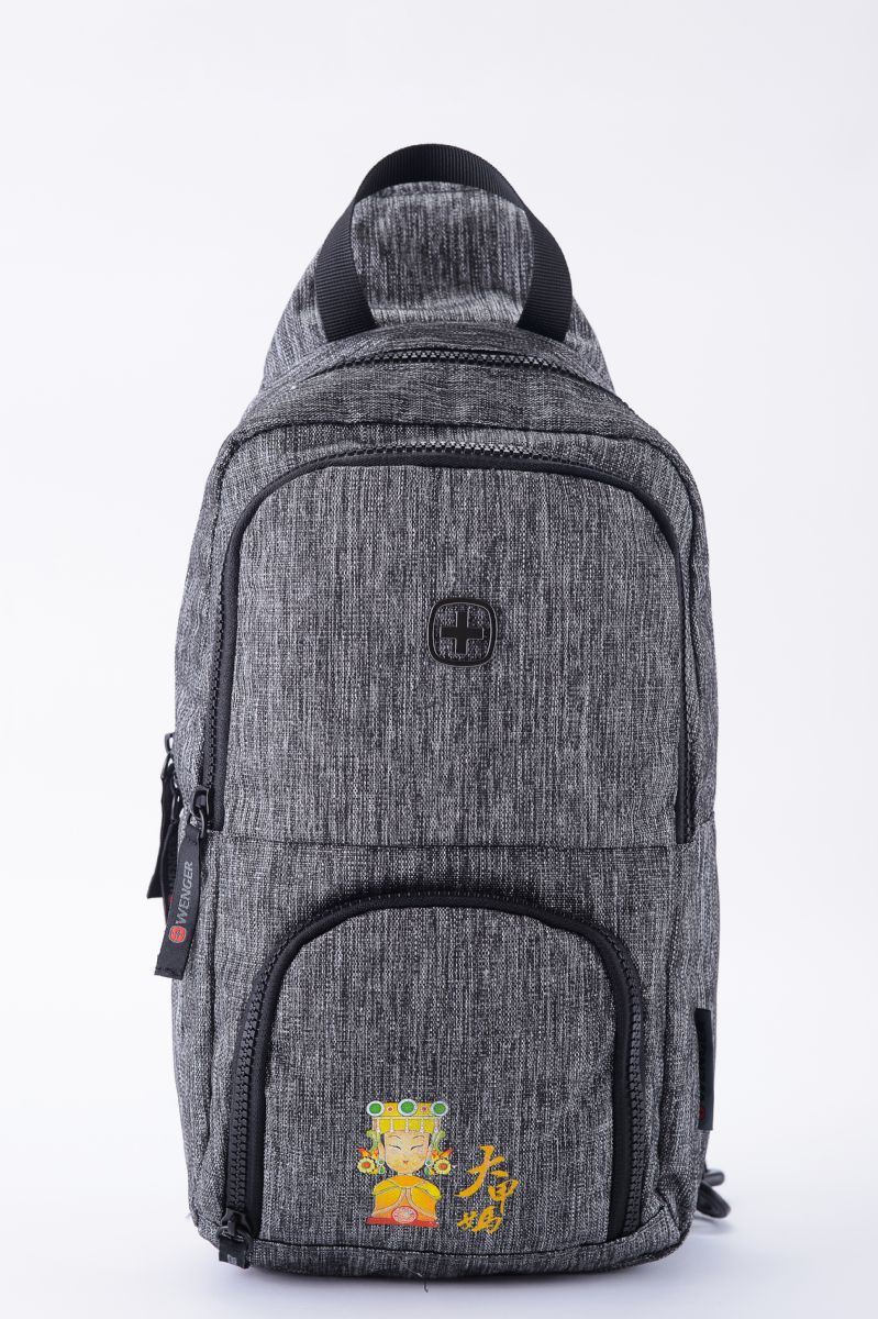 ◎Wenger單肩包,防潑水材質,前後左右都可揹,更加方便不費力,前方口袋可放隨身小物,二個大主袋可放水瓶及雨傘及外套等,輕巧又方便。一共有二個顏色二個圖案,大甲媽Q版灰、大甲媽Q版藍、2019年付出灰色,2019年付出藍色等。