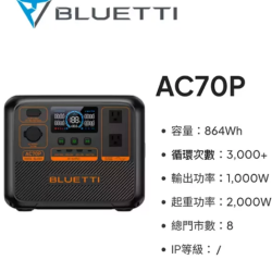 Bluetti EB70S 800W 716Wh 戶外移動電源 展覽特惠活動
