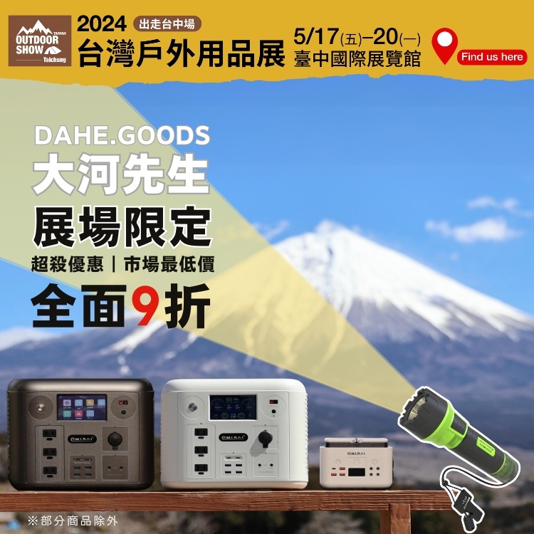 - 本活動頁非展場所有展出商品、優惠資訊,更多精彩展出內容與展場購物優惠,都在【2024台灣戶外用品展—出走台中場】現場!