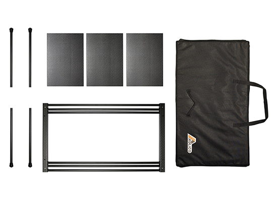 內容物:碳纖維桌框*1、一單位碳纖維桌板*3、40cm碳纖維桌腳*4、收納袋 -