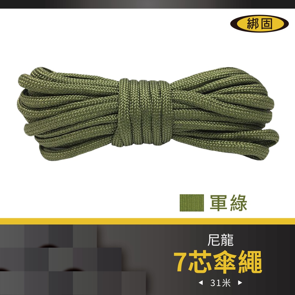 軍用規格傘繩,可拿來編織或是當露營天幕繩使用,內芯強韌彈性佳!