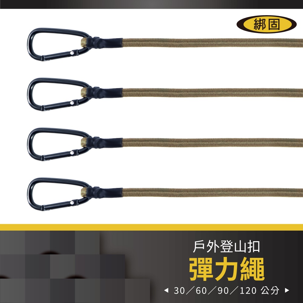 有30公分~120公分的長度,線徑8mm,可用來綑綁固定物品,兩端有D扣設計,方便使用!