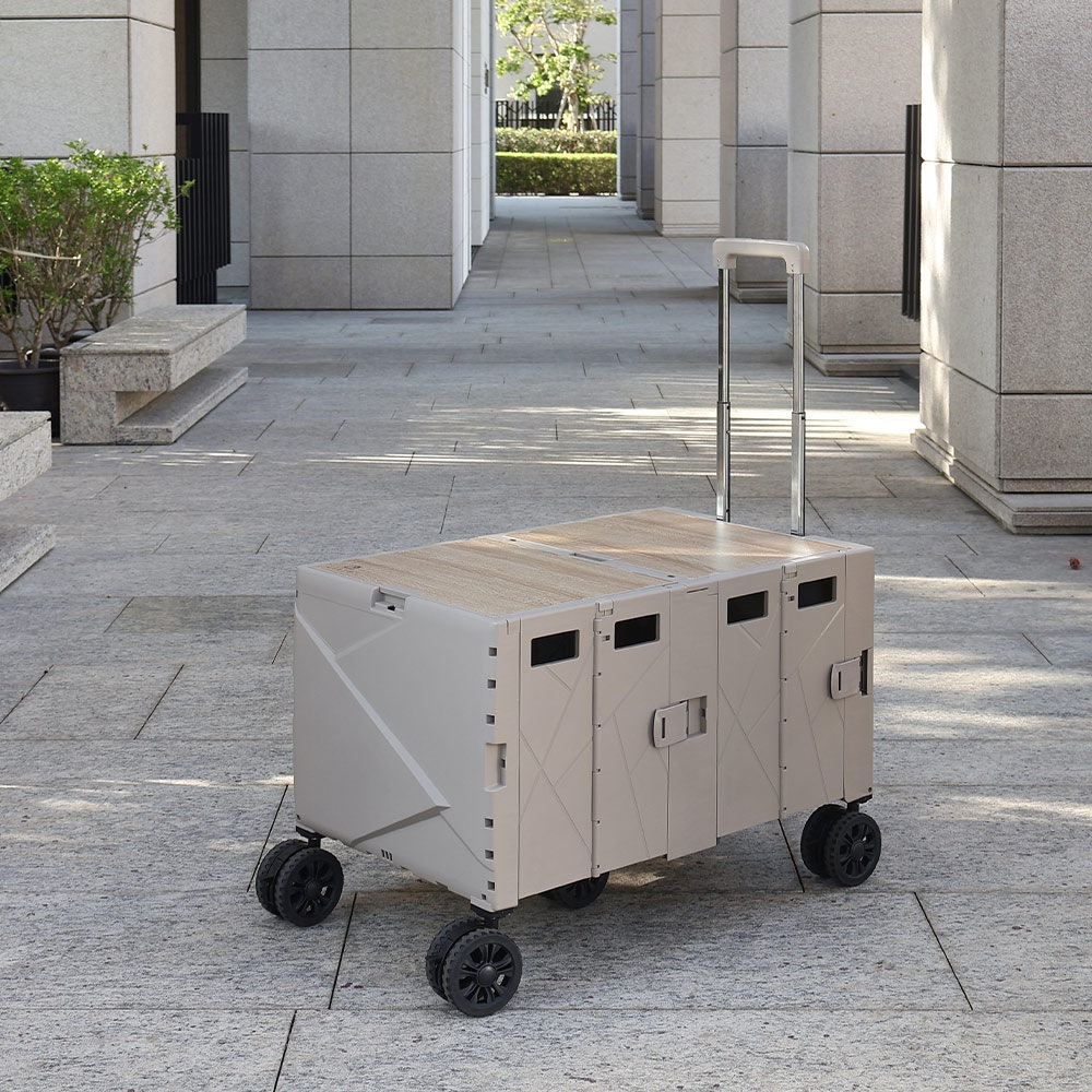 擴充式折疊收納手推車-沙色