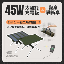 emirai EMRS45 太陽能充電戰術桌|45W 戰術級 2in1 設計