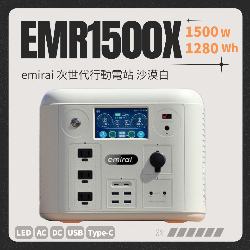 emirai EMR1500X次世代行動電站|沙漠白|1500W/1280Wh