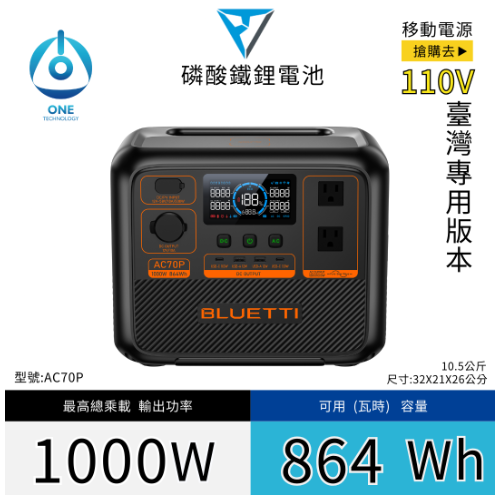 Bluetti AC70P 1000W 864Wh 主要特色: