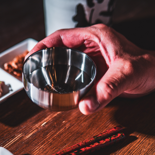 Press-formed from a single sheet of stainless steel, this large-capacity sake cup.Unlike typical two-layer structures, you can enjoy the shifting temperature changes.Hand-polished by skilled craftsmen.Meticulously crafted by our sake-loving CEO.Weighing 150g, it feels substantial in your hand.With a 140ml capacity, it's perfect for those who enjoy drinking plenty.