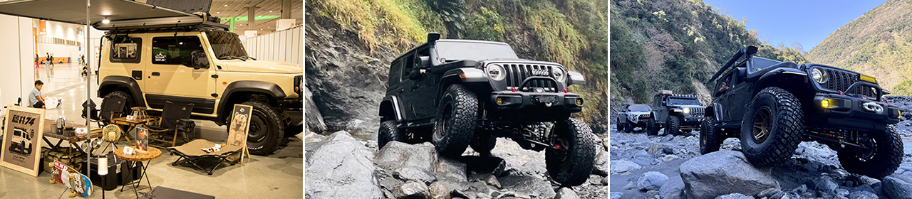 由 Suzuki Jimny、Jeep、INEOS Grenadier、Toyota Tacoma 所組成的越野車隊。FRTW一次集結全台北中南的夥伴,從小巧靈活到霸氣越野,展現各種車宿風格。車不只是代步工具,而是戶外生活的移動基地。期待讓更多人實際感受車宿生活的樣貌!