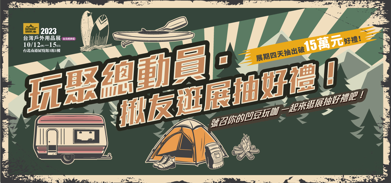 - 展期10/12(四)-10/15(日)將於每晚20:00前抽出幸運得主,並公布於台灣戶外用品展Facebook粉絲專頁,並電聯得獎者,敬請留意來電通知。