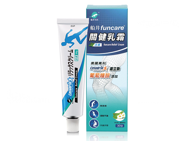 使用美國專利Celadrin搭配日本專利葡萄糖胺鹽酸鹽,透過塗抹按摩達到滲透舒緩關健部位疲勞狀況;嚴選草本植物萃取成分,能舒緩放鬆肌膚,另添加膠原蛋白、維生素E,恢復肌膚健康及彈性。不含類固醇、水楊酸甲酯,給予肌膚最自然無負擔的呵護,適用於久站族群、運動後、銀髮族等。