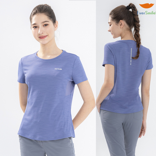 【幸福台灣】女再生吸排條感運動圓T(吸濕排汗、速乾透氣、反光印花、彈力、修身剪裁、環保材質)