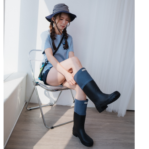 D3 系列 - 後束口設計 - 文青藍可摺式登山雨鞋