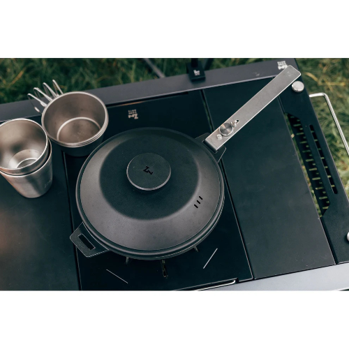 這款鍋子是專門為露營料理設計的實用造型,不管是煮火鍋還是當平底鍋煎東西都沒問題。而且還能多個堆疊起來,方便收納和攜帶。