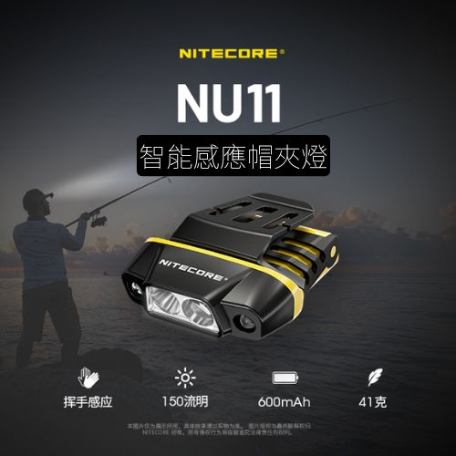奈特科爾NU11智慧感應帽夾燈,揮手控光,最高150流明輸出與50米射程,內置600mAh鋰電池供電,自帶多用途背夾,全重僅41克,揮手控光,整夜陪伴。
